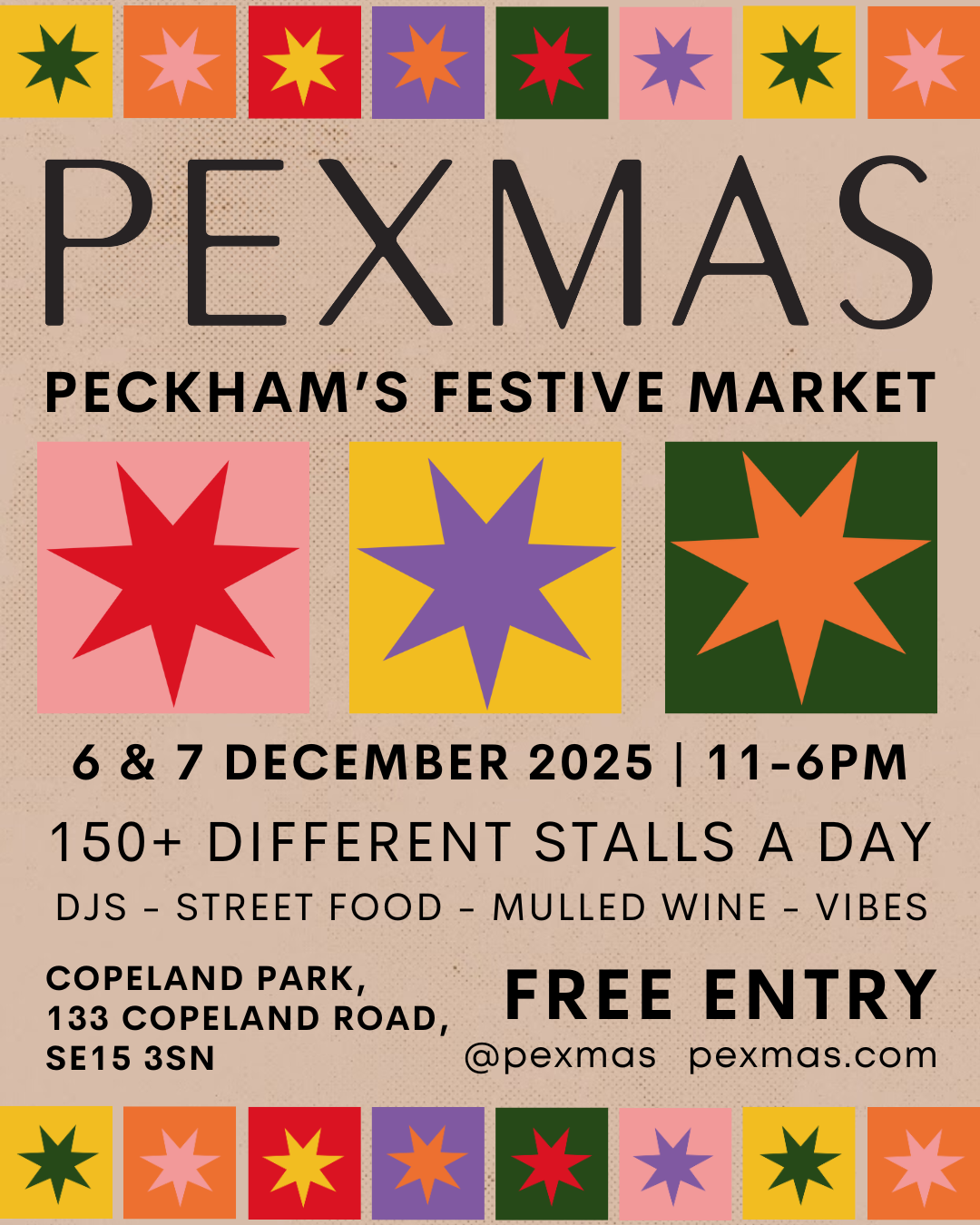We’re back! Come shop small this weekend at Copeland Park in Peckham with hundreds of local creative businesses. Get your whole Christmas list sorted, grab some delicious food and a mulled wine, and kick off your festive season, Pexmas style.